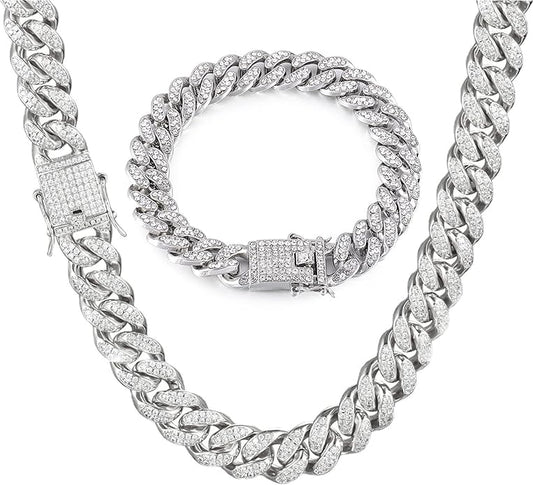 ⭐️ 2pcs Cuban Link Chain for Men,Miami Cuban Chains,Bling Diamond Chain for Hip Hop Jewelry