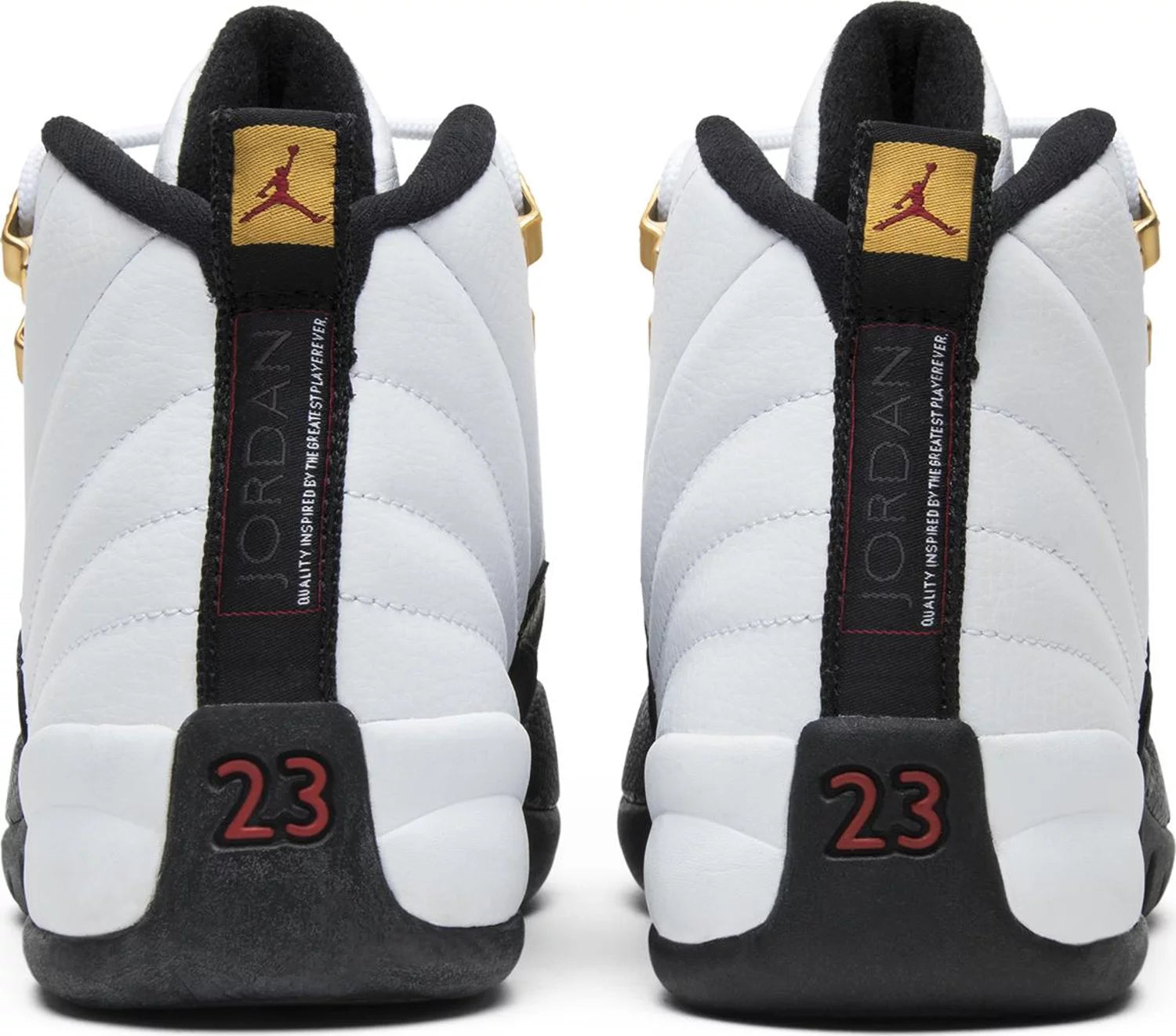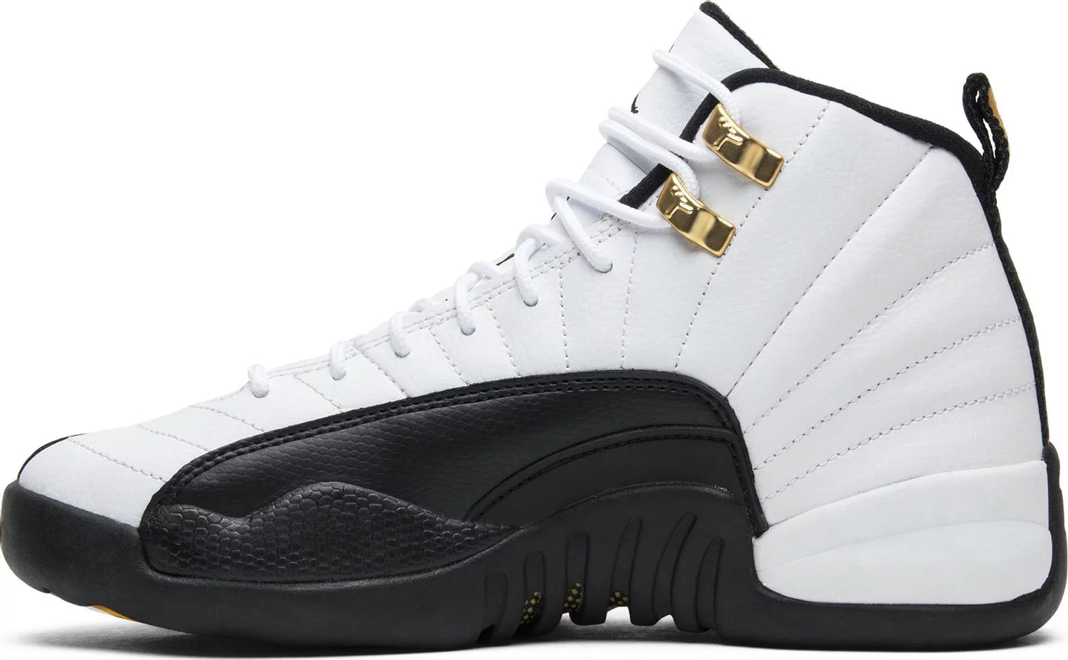 JORDAN 12s: "2013 Taxi PS" White and black colorway, featuring a striking black and yellow design inspired by New York City taxis. With a yellow carbon-fiber shank, gold accents, and a subtle red touch, this sneaker is a must-have for any Jordan fan.
