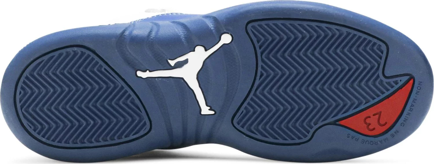 The 2016 Air Jordan 12 Retro PS 'French Blue' offers a familiar red, white, and blue color scheme with a tumbled white leather upper, French Blue mudguard and outsole, and a pop of red on the outsole. Originally designed for Michael Jordan's Washington Wizards, this sneaker offers both style and comfort.