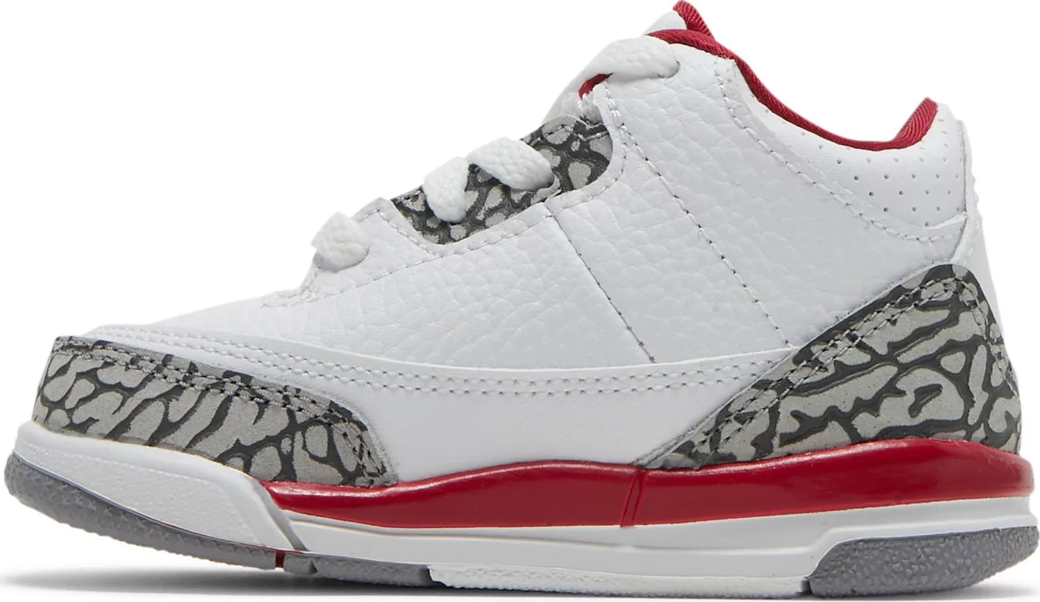 CARDINALS JORDAN 3 ‘TD’. Made with premium tumbled leather and a cushioned foam midsole, these scaled-down sneakers deliver retro vibes with modern updates. Grey elephant overlays and a fiery crimson hue elevate the iconic Air Jordan 3 design, while the embroidered Jumpman adds a pop of color.