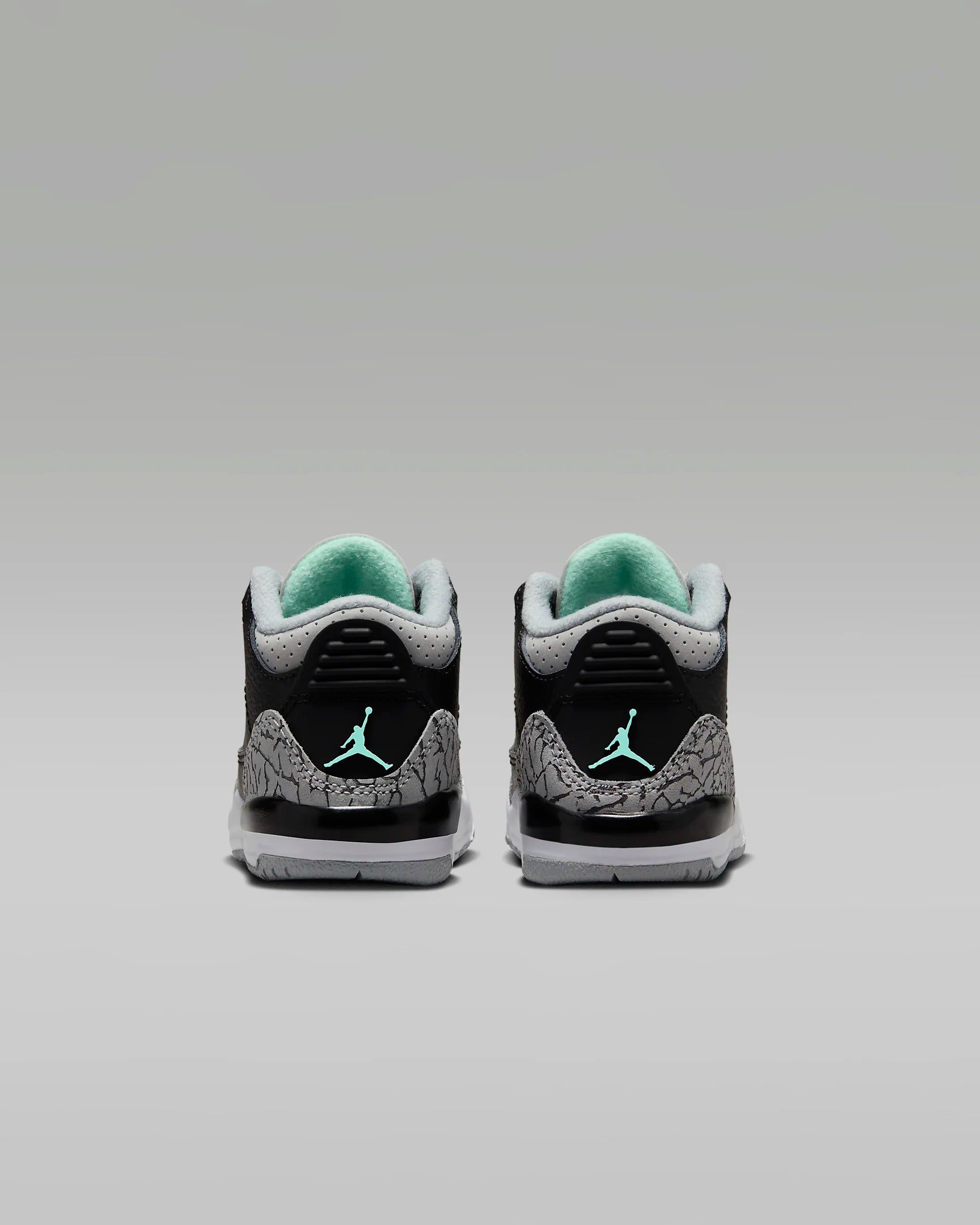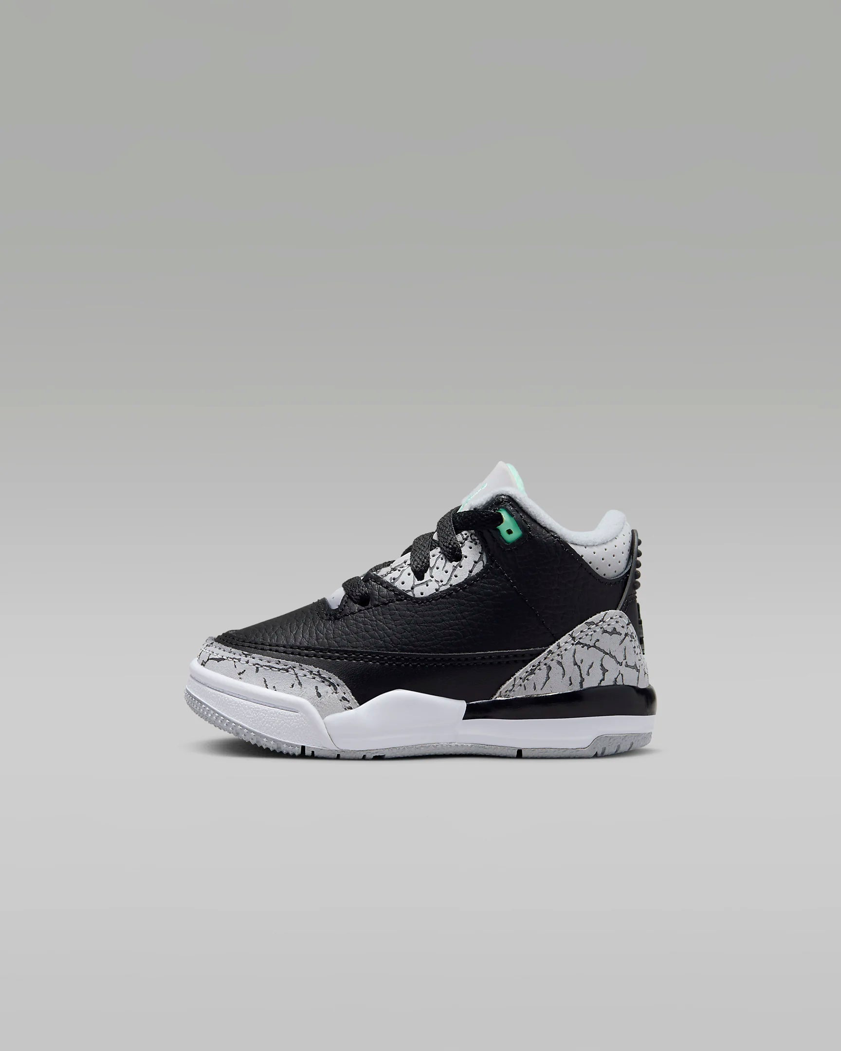 Experience timeless style and quality materials with Jordan 3s “GREEN GLOW” Toddlers, perfect for your little star. The luxurious elephant print texture and unparalleled design will elevate their playground experience. Give them the gift of comfort and style.